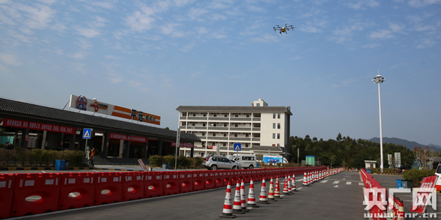 不遠(yuǎn)處,操作人員手持遙控器,緊盯屏幕,掌控著無(wú)人機(jī)的飛行軌跡,引起了眾多司乘群眾的注目。