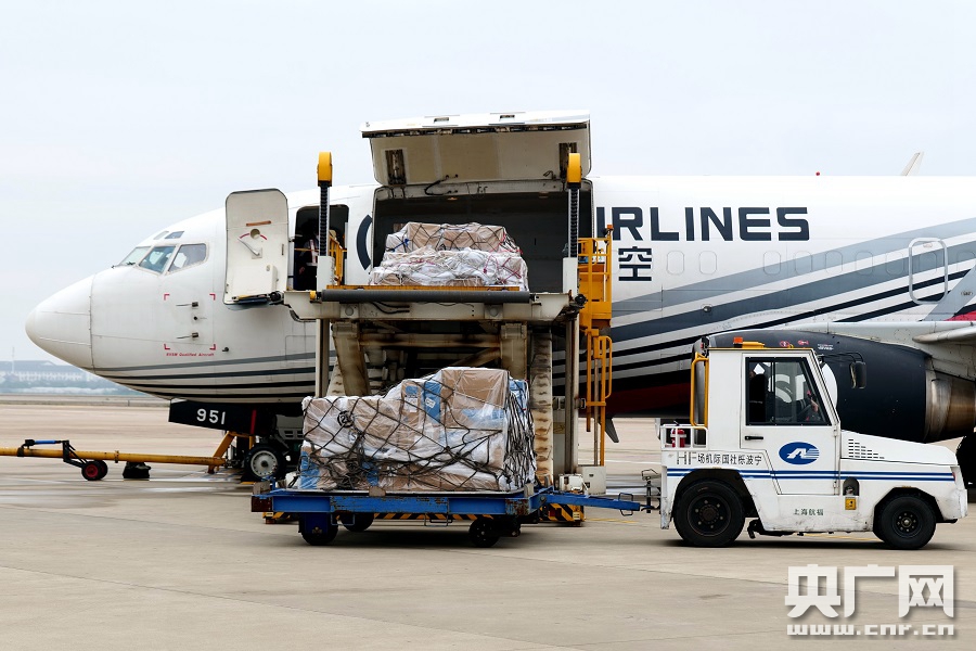 生活、醫(yī)療物資運(yùn)抵寧波機(jī)場(chǎng)(央廣網(wǎng)發(fā) 寧波機(jī)場(chǎng)供圖)