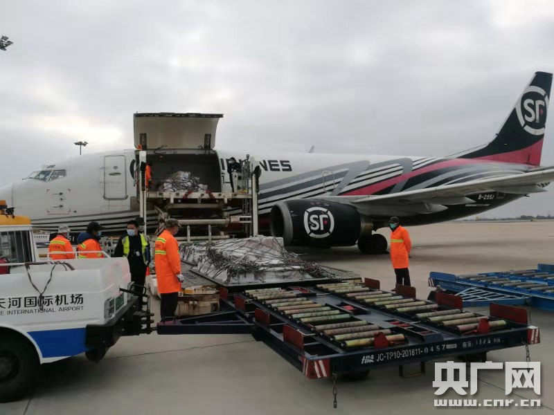貨機(jī)抵達(dá)武漢天河機(jī)場(chǎng)(央廣網(wǎng)發(fā) 寧波機(jī)場(chǎng)供圖)
