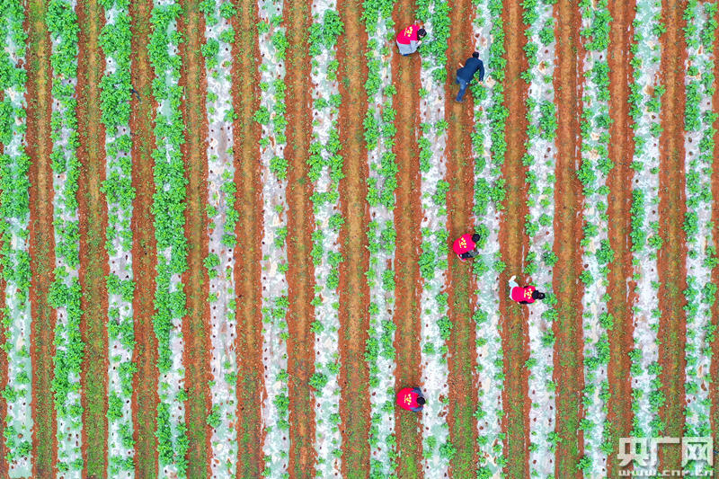 大學(xué)生在田地里把理論知識(shí)和實(shí)踐聯(lián)系起來(lái),以所學(xué)所研服務(wù)家鄉(xiāng)農(nóng)業(yè)(央廣網(wǎng)發(fā) 肖亞輝攝)