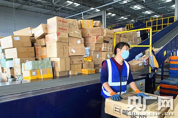 物流公司理貨員整理掃碼貨物(央廣網(wǎng)記者 堯遙 攝)