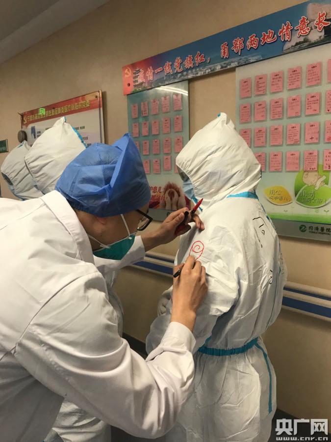 活動現(xiàn)場,男生們獻唱了《玫瑰玫瑰我愛你》和《風(fēng)雨彩虹鏗鏘玫瑰》。在歌聲中,男性醫(yī)護人員紛紛拿起畫筆,在女神的防護服上畫下一朵朵鮮紅的玫瑰。