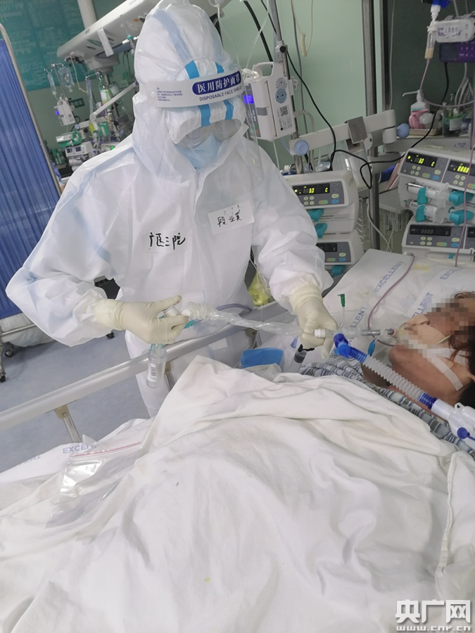 △段業(yè)英為新冠肺炎患者做護理治療