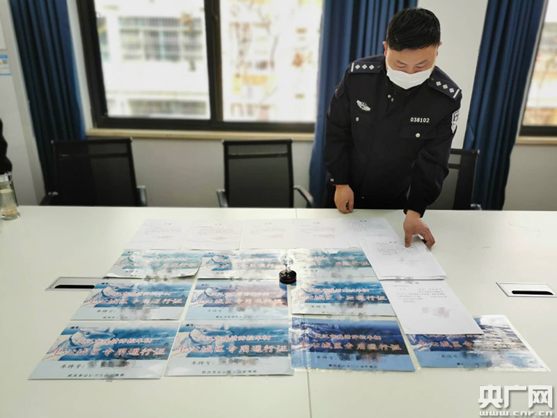 警方查獲的偽造通行證(央廣網(wǎng)發(fā) 武漢公安供圖)
