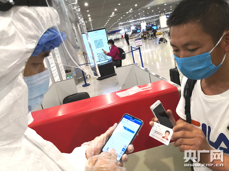 工作人員正在對旅客進行查驗(央廣網(wǎng)發(fā) 通訊員供圖)