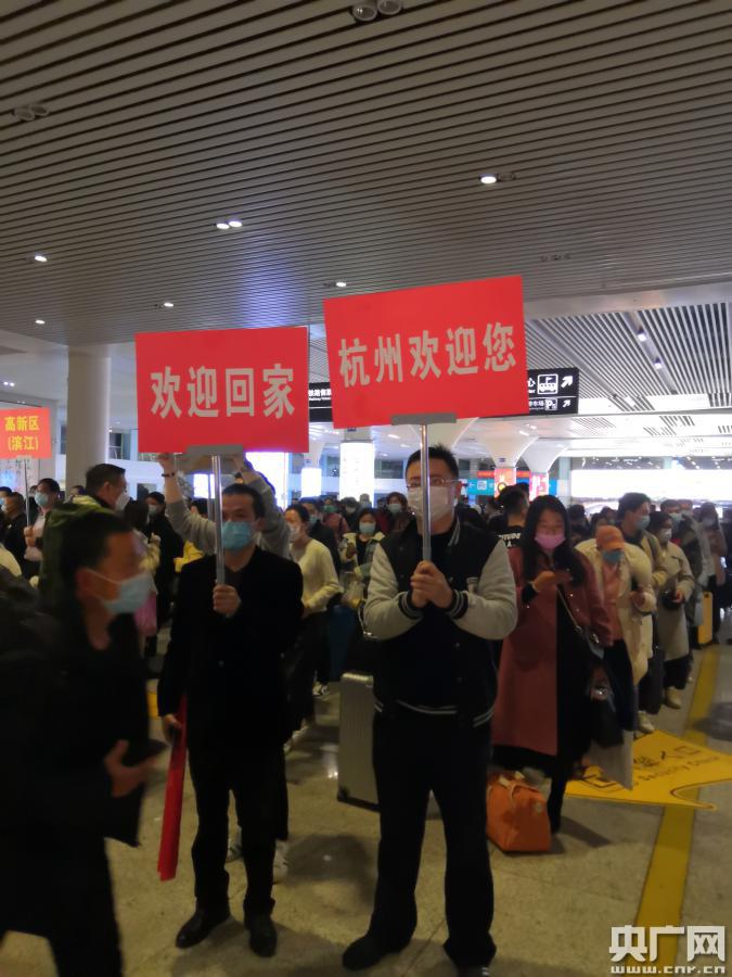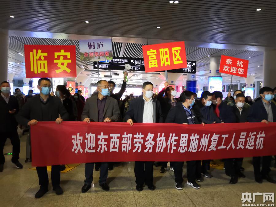 首趟湖北恩施杭州勞務協(xié)作扶貧專列今晚到達杭州(央廣網(wǎng)發(fā) 杭州市人力社保局供圖)