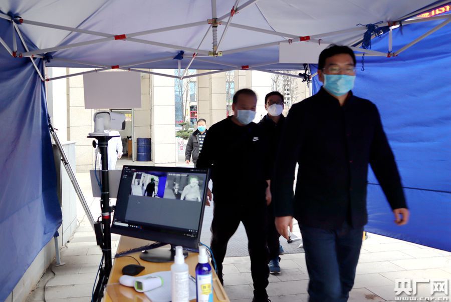 圖為寶雞市石油中學(xué)演練模擬使用學(xué)生入校全自動熱成像測溫篩查系統(tǒng)(央廣網(wǎng)記者 舒隆煥 攝)