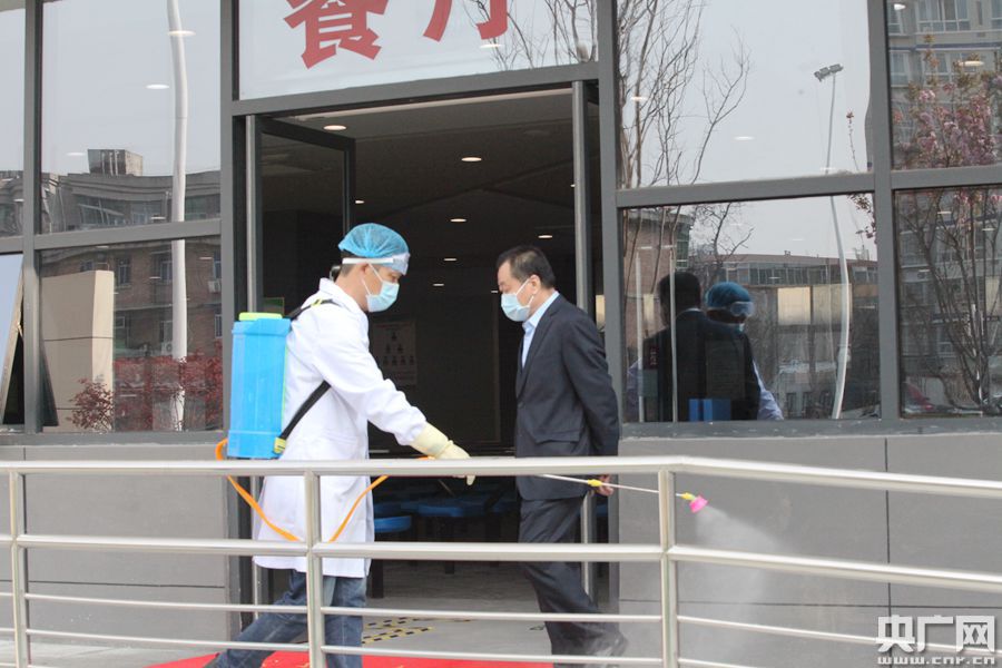 圖為西咸新區(qū)灃東新城車輛中學(xué)對學(xué)校餐廳進(jìn)行消殺(央廣網(wǎng)記者 舒隆煥 攝)