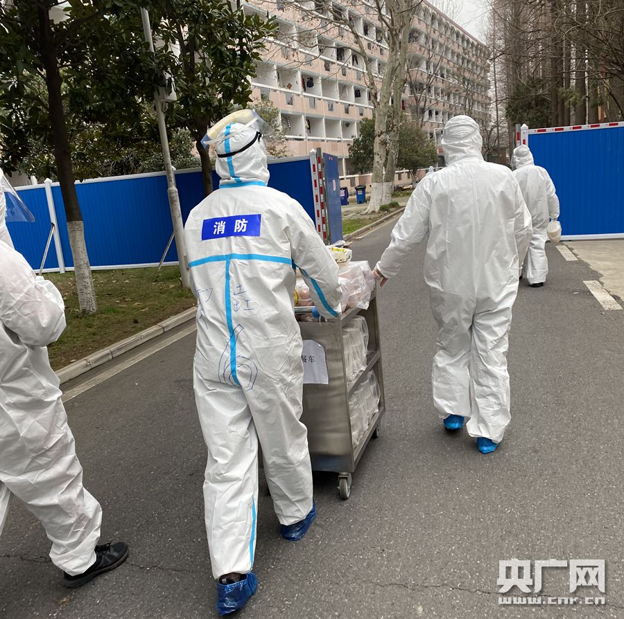 從3月9日開始,近800名隔離觀察人員陸續(xù)入住武漢船舶學(xué)院康復(fù)驛站。覃垚所在的援漢突擊大隊(duì)一分隊(duì)負(fù)責(zé)人員入住、一日三餐配送、生活物資領(lǐng)取發(fā)放和環(huán)境衛(wèi)生殺消工作!按┲綦x服,送一趟飯菜下來就相當(dāng)于蒸了個(gè)熱桑拿,衣服全濕透!边@個(gè)由學(xué)生宿舍改建而來的康復(fù)驛站,樓高7層,沒有電梯,再加上防護(hù)服的束縛和口罩面罩導(dǎo)致的呼吸不暢,每次運(yùn)送不了多少物資。而他所在班級(jí)負(fù)責(zé)的兩棟樓有300多人,一到值班就得10多個(gè)小時(shí)連軸轉(zhuǎn),上下樓梯十多次!白疃嘁惶炫懒66層樓,感覺一天下來,工作強(qiáng)度不亞于進(jìn)行了一場(chǎng)高強(qiáng)度的搶險(xiǎn)!瘪麍惛锌。