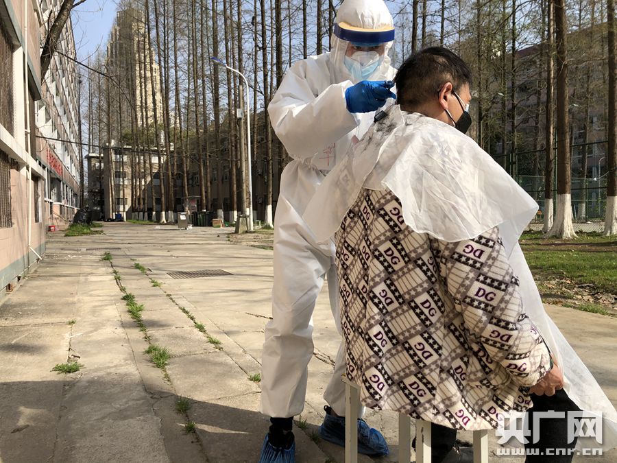 有事您說話,消防來解答!這是覃垚所在的援漢突擊大隊(duì)一分隊(duì)提出來的工作口號(hào)。3月14號(hào),6棟的李大爺說自己將近4個(gè)月沒有理過發(fā)了,希望得到幫助。得知消息后,覃垚想起自己以前集訓(xùn)的時(shí)候給戰(zhàn)友理過發(fā),便主動(dòng)請(qǐng)纓,拿起剪刀為他解決“頭”等大事。經(jīng)過一番修剪,李大爺頭長(zhǎng)頭發(fā)變短了,人也精神了?粗逅睦畲鬆敚麍愊氲娇祻(fù)驛站肯定還有很多跟大爺一樣需求的人,于是就在分隊(duì)領(lǐng)導(dǎo)的支持下成立了一個(gè)“消防義務(wù)理發(fā)小隊(duì)”,帶領(lǐng)大家為每一位有需要的隔離人員和工作人員義務(wù)理發(fā)。樓上樓下,來回奔波,躬身為每一位患者理發(fā)、幾個(gè)小時(shí)不能上廁所、手在橡膠手套的束縛下變得慘白,就是覃垚在康復(fù)驛站一天的工作常態(tài),雖然腳麻了、手酸了,他卻沒有一聲埋怨,而是堅(jiān)守崗位迎難而上。