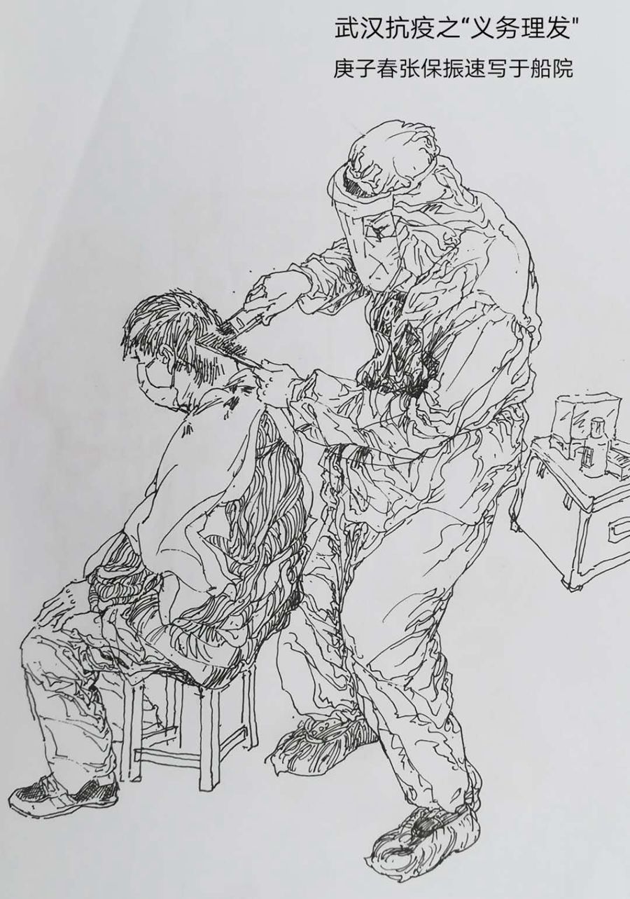 康復(fù)驛站工作人員張保振記錄覃垚理發(fā)創(chuàng)作的速寫(央廣網(wǎng)發(fā) 重慶市消防救援總隊(duì)彭水大隊(duì)供圖)