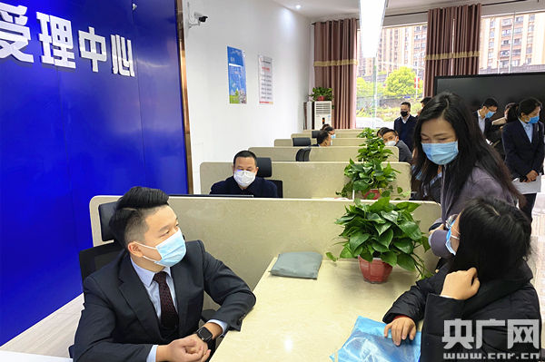 受理中心現(xiàn)場為企業(yè)提供續(xù)貸受理和融資便利服務(wù)(央廣網(wǎng)記者 堯遙 攝)
