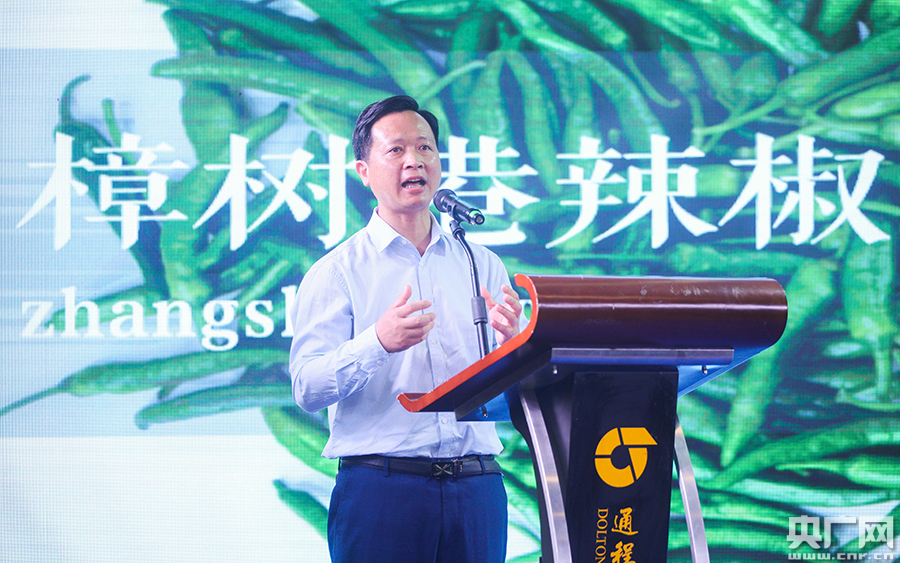 湘陰縣縣長(zhǎng)李鎮(zhèn)江激情推介湘陰獨(dú)具特色的鄉(xiāng)村文化旅游和“辣”名鵲起的地標(biāo)名片樟樹港辣椒(央廣網(wǎng)發(fā) 主辦方供圖)