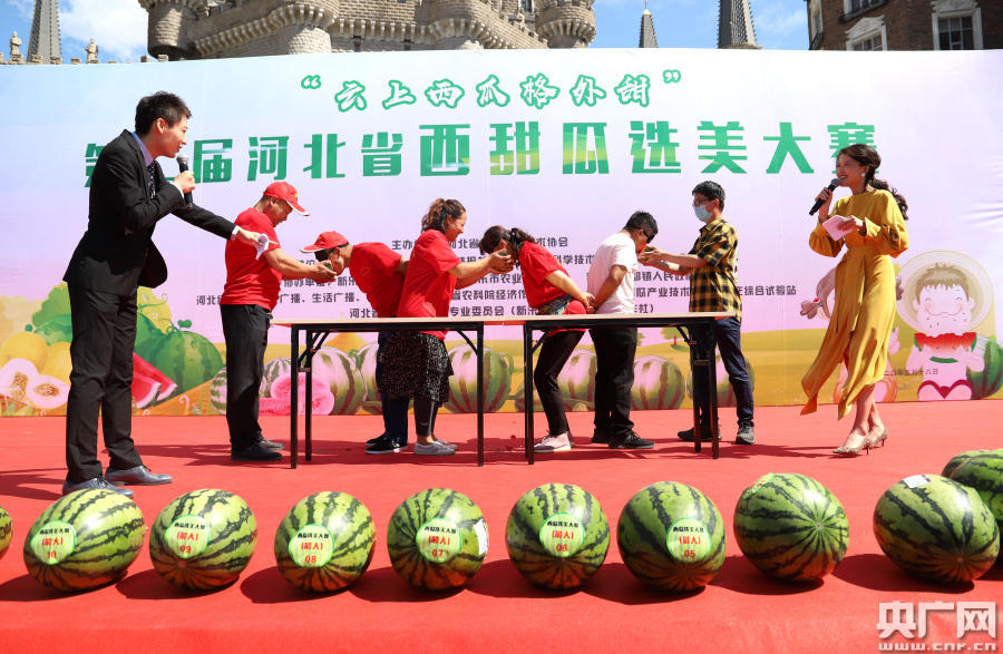 央廣網(wǎng)石家莊5月18日消息(記者孟曉光 見習記者張說地 通訊員王民)疫情難當大賽情,“云上”西瓜格外甜。5月18日,第二屆河北省“西甜瓜選美大賽”在新樂市河北美術(shù)學院南廣場舉行。此次大賽由河北省農(nóng)村專業(yè)技術(shù)協(xié)會主辦,新樂市人民政府、河北科技報社、石家莊市科普中心承辦。