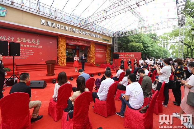 央廣網(wǎng)杭州5月26日消息(記者魏煒 謝夢潔)近年來,作為“中國電商之都”的杭州一直在大力發(fā)展“云上經(jīng)濟”。5月26日,杭州首個電商助農(nóng)直播基地在杭州市西湖區(qū)對口協(xié)作優(yōu)質(zhì)農(nóng)產(chǎn)品展銷中心落成。該直播基地的建成,既是“云上杭行”直播電商季在助農(nóng)領(lǐng)域的重要嘗試,也為杭州市的對口幫扶工作開辟了新渠道。
