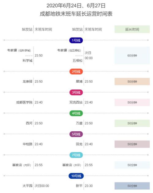 端午節(jié)期間,成都地鐵端午節(jié)前一天及節(jié)假日最后一天(6月24日、6月27日),各線路將延長運營服務時間50-60分鐘,同時通過增加備用車數(shù)量、靈活采取回段列車及備用列車加開上線等調整手段,做好大客流情況下的運力保障。