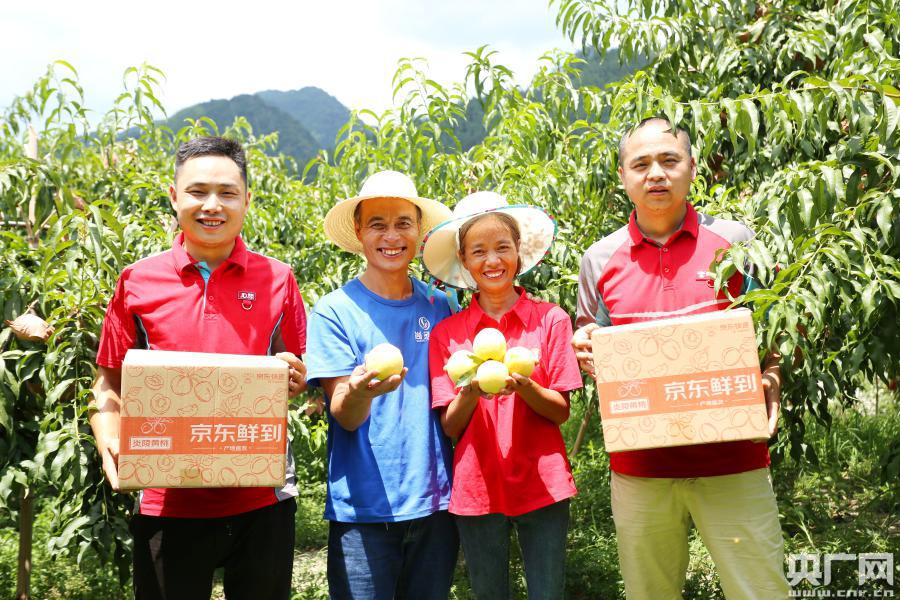 京東工作人員在炎陵縣田間地頭攬收黃桃(央廣網(wǎng)發(fā) 受訪者供圖)