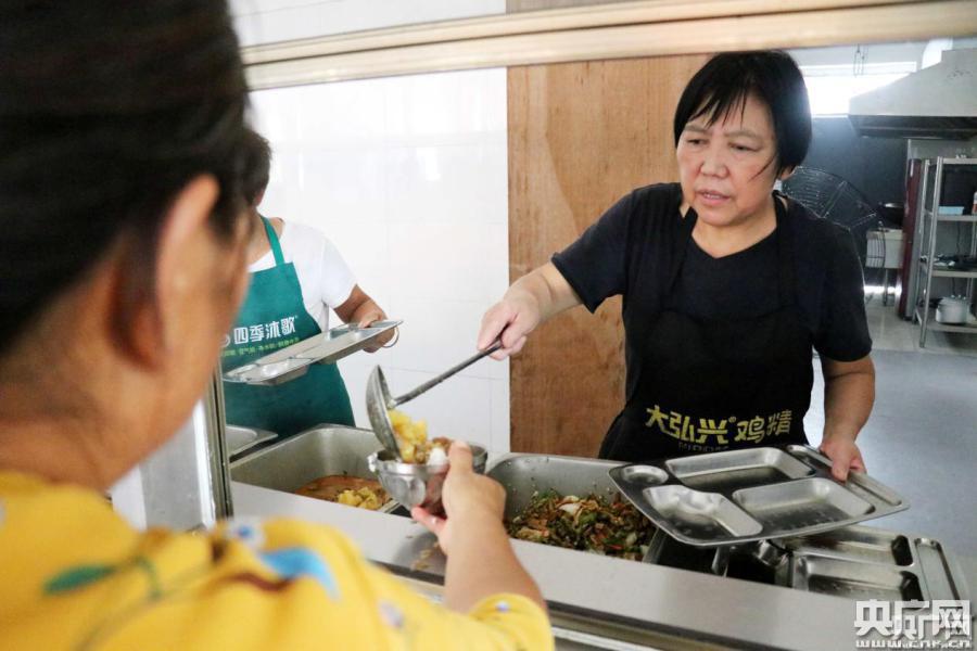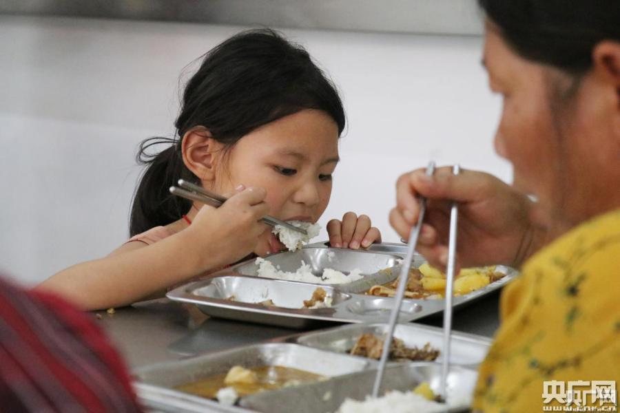 安置點(diǎn)的居民正在吃午飯。(央廣網(wǎng)記者 徐鵬 攝)
