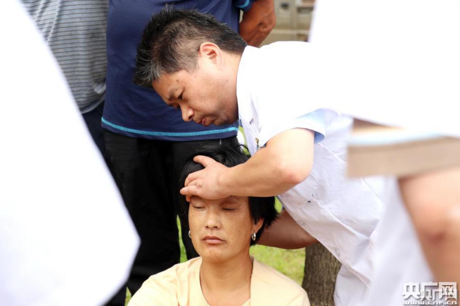 醫(yī)護(hù)人員為安置點(diǎn)群眾檢查身體。(央廣網(wǎng)記者 徐鵬 攝)