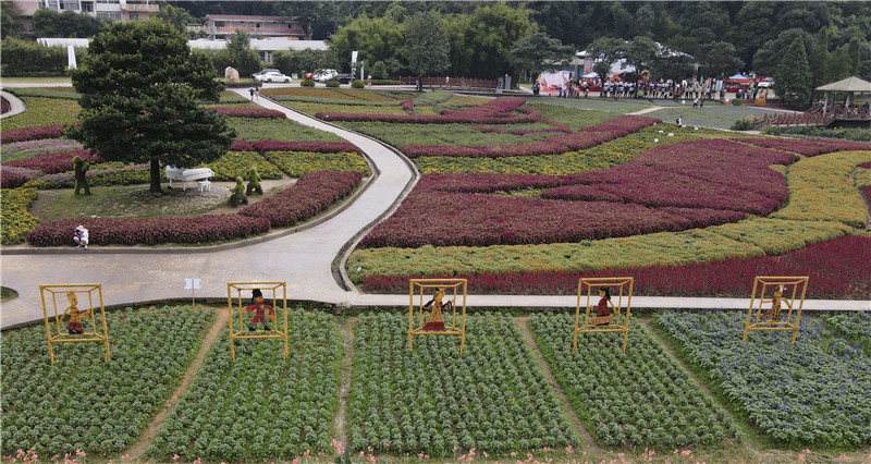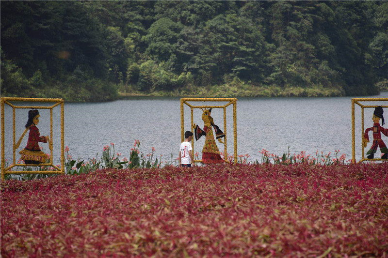 記者看見今屆稻草文化藝術節(jié)占地面積30多畝,一共提供32組稻草造型,還有天池花海相伴,山水相擁、花海無邊,隨手一拍都是大片。稻草造型中,孟母教子傳說、濟公傳說、牛郎織女傳說、皮影戲、中國象棋、中國戲曲......一個個國家級非遺項目用稻草編織而成,生動形象地呈現(xiàn)在游人的面前。主辦方介紹,每一項非物質(zhì)文化遺產(chǎn)都是人類文明的記憶載體,中國非物質(zhì)文化遺產(chǎn)十大類別的稻草作品等你一一來揭秘。