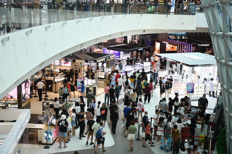 三亞國際免稅城是全球最大單體免稅店,地上三層、地下一層,總面積12萬平方米,囊括350多個國際奢侈品牌,是以免稅為主題,融商業(yè)、餐飲、娛樂、休閑、購物于一體的綜合性旅游項目。今年7月1日起,海南離島免稅購物政策調(diào)整實施,除了每年每人離島免稅購物額度從3萬元提高至10萬元外,還取消了單件商品8000元的免稅限額規(guī)定。作為海南旅游業(yè)的一張“金名片”,海南離島免稅政策的逐步放寬,大幅提高了消費者的購物體驗,讓旅客消費能力在海南自貿(mào)港內(nèi)就能夠釋放。