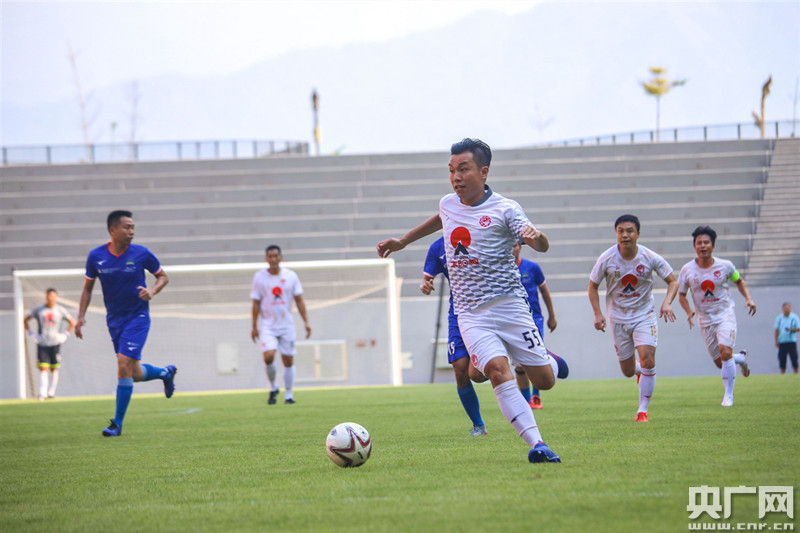 彭偉國等廣東足球名宿組成廣州歲月明星足球隊對陣四會市足球隊表演賽(央廣網(wǎng)發(fā) 通訊員梁亮 攝)