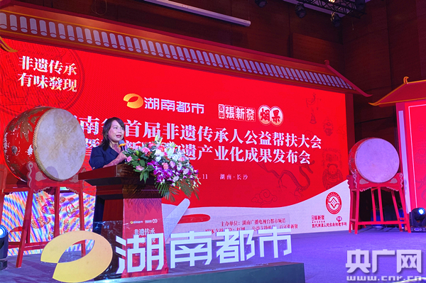 湖南大學非物質文化遺產研究中心副教授楊美新致辭(央廣網記者 堯遙 攝)