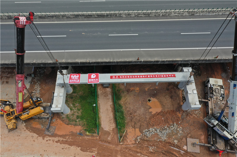 深汕西高速改擴(kuò)建首片梁架設(shè)成功(央廣網(wǎng)發(fā)通訊員供圖)