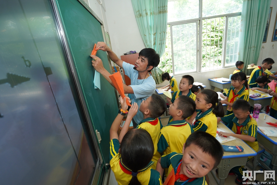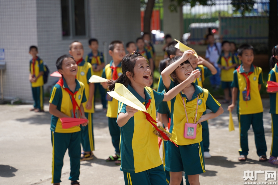 “實(shí)現(xiàn)飛行夢(mèng)想”課堂,孩子們折疊并放飛紙飛機(jī)(央廣網(wǎng)發(fā) 主辦方供圖)