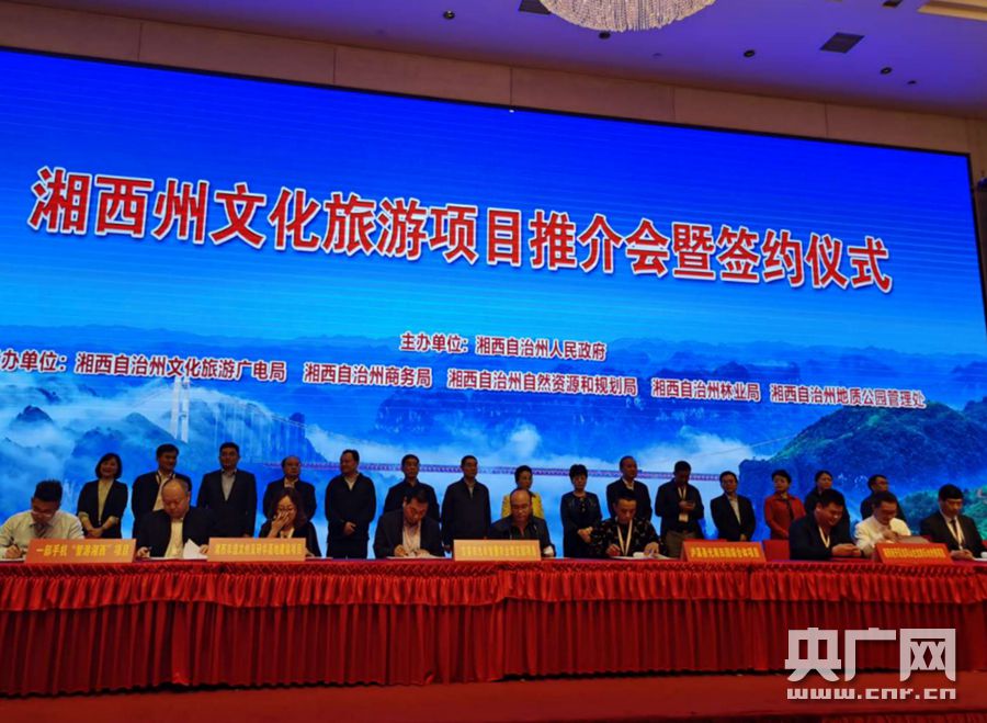 央廣網(wǎng)湘西9月22日消息(記者鄧文輝)今天(22日)下午,湘西世界地質(zhì)公園暨湘西州文化旅游推介和項(xiàng)目簽約儀式在吉首成功舉行;顒(dòng)現(xiàn)場簽約項(xiàng)目11個(gè),協(xié)議投資總額22.18億元。