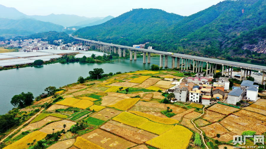 央廣網(wǎng)贛州11月2日消息(記者謝元森 通訊員朱海鵬)深秋時(shí)節(jié)的江西省贛州市會(huì)昌縣白鵝鄉(xiāng)白鵝村,阡陌縱橫、長(zhǎng)虹臥波,一塊塊金黃色的稻田鑲嵌在大地,風(fēng)光旖旎如畫(huà)。