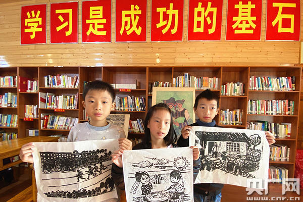 在西嶺鎮(zhèn)平安村的同心書屋里,一群小學生正在這里看書、學藝,這里也是湖南圖書館、衡陽市圖書館以及常寧市圖書館的分館。來自平安完小的汪瑞欣和她的小伙伴們正在認真制作版畫,她學習這項技藝已經(jīng)一年多!斑@里有專業(yè)的老師指導,長大了我想成為一名藝術(shù)家。”9歲的汪瑞欣說出了自己的愿望。