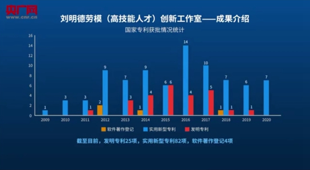 2016年8月,“劉明德勞模(高技能人才)創(chuàng)新工作室”成立,迄今累計獲得111項國家專利。