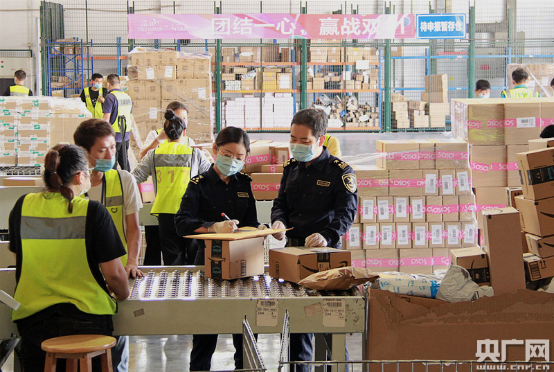 佛山海關(guān)駐南海辦事處關(guān)員對跨境電商進口貨物進行監(jiān)管(央廣網(wǎng)發(fā) 海關(guān)供圖)