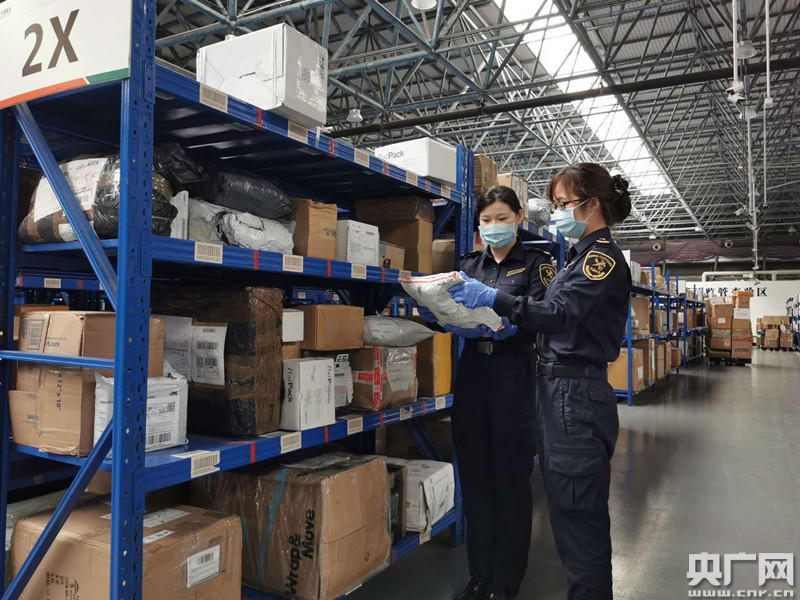 廣州海關(guān)所屬廣州郵局海關(guān)關(guān)員對“雙11”期間進出境郵件進行監(jiān)管(央廣網(wǎng)發(fā) 海關(guān)供圖)