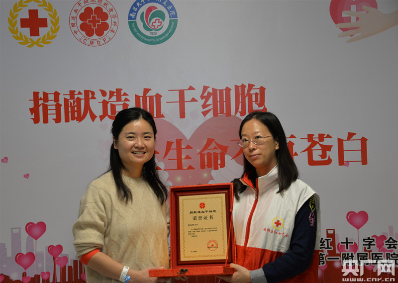 造血干細胞捐獻志愿者夏曉雯(左)捐獻成功(央廣網發(fā) 通訊員供圖)