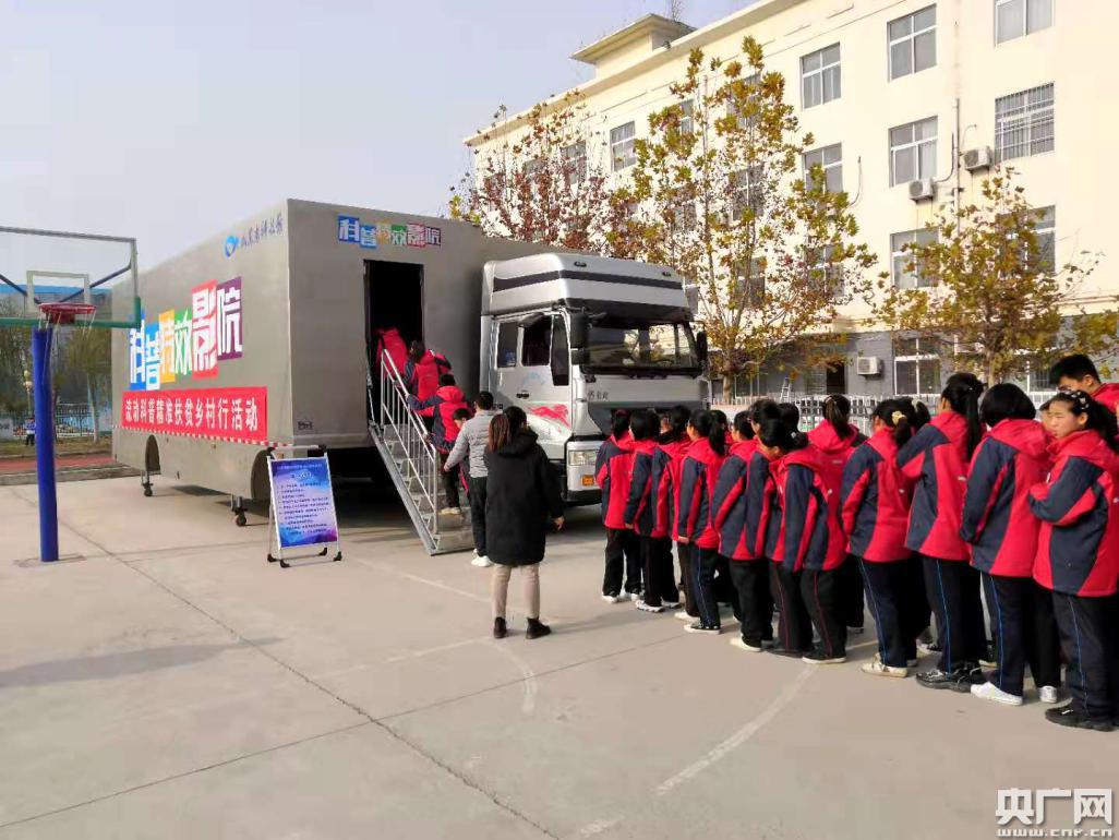學(xué)生們有序體驗(yàn)流動(dòng)科普特效影院(央廣網(wǎng)發(fā) 山東省科技館供圖)