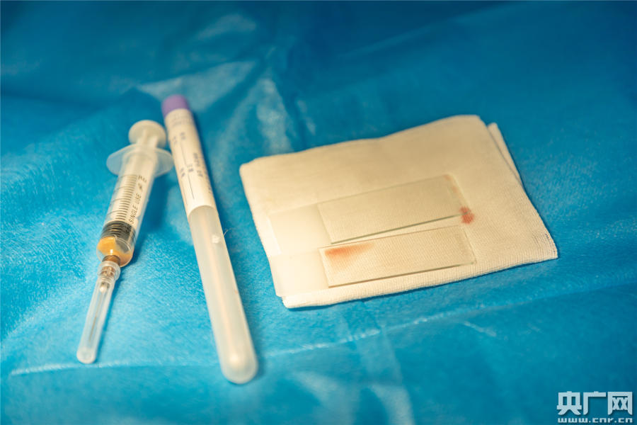 獸醫(yī)張?zhí)煊訉?duì)黃金蟒進(jìn)行抽血,供后續(xù)檢查使用(央廣網(wǎng)發(fā) 通訊員供圖)