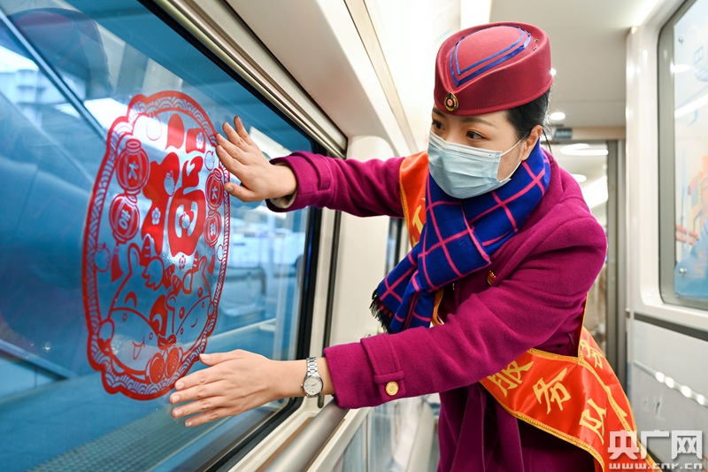 動車組工作人員正在裝扮車廂(央廣網(wǎng)發(fā) 通訊員包亮 攝)