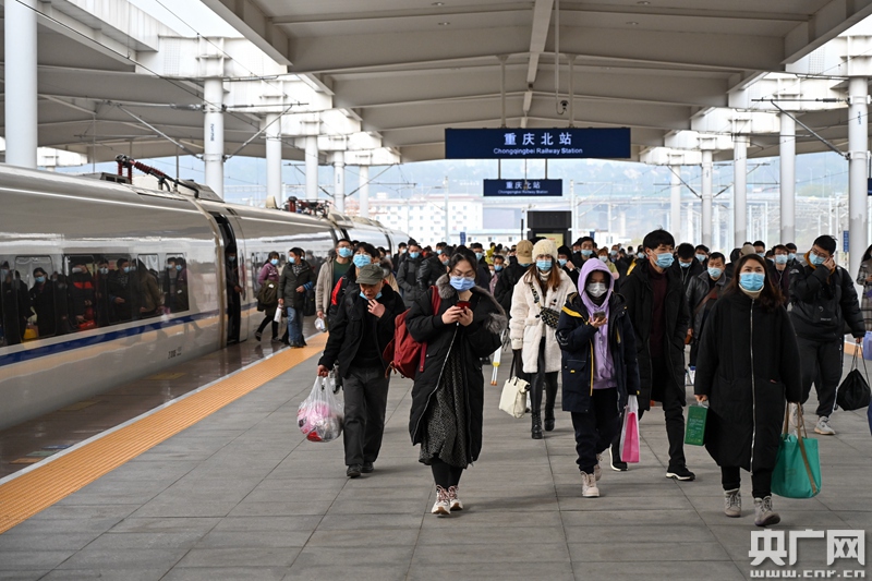 1月28日,由萬州北開往重慶北的C6403次旅客列車到達重慶北站(央廣網(wǎng)發(fā) 通訊員包亮 攝)