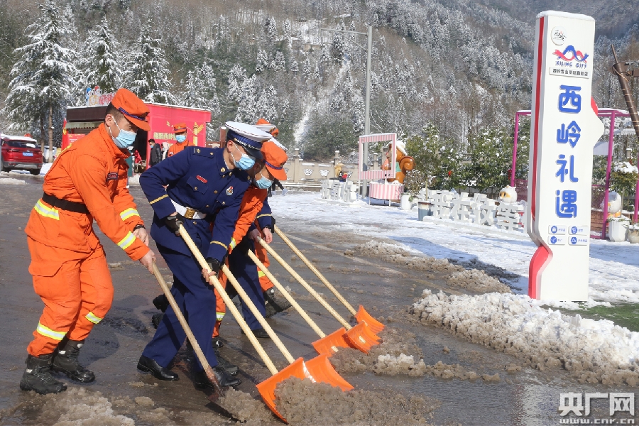 清掃積雪(央廣網(wǎng)發(fā) 四川森林消防供圖)