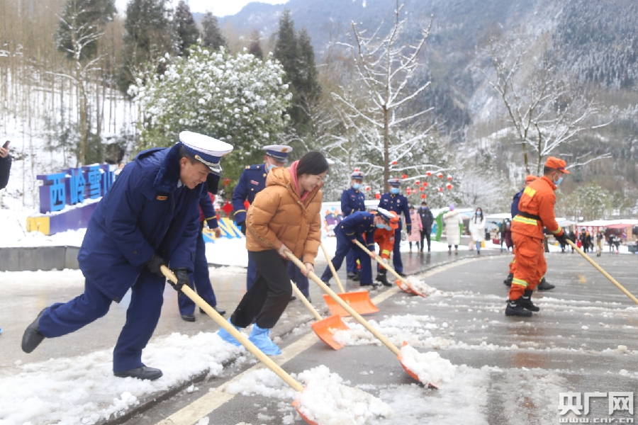 群眾參與除雪(央廣網(wǎng)發(fā) 四川森林消防供圖)