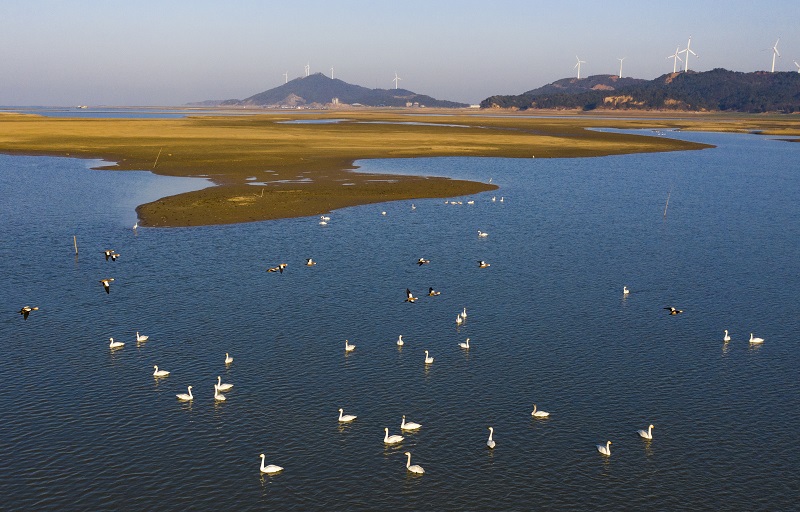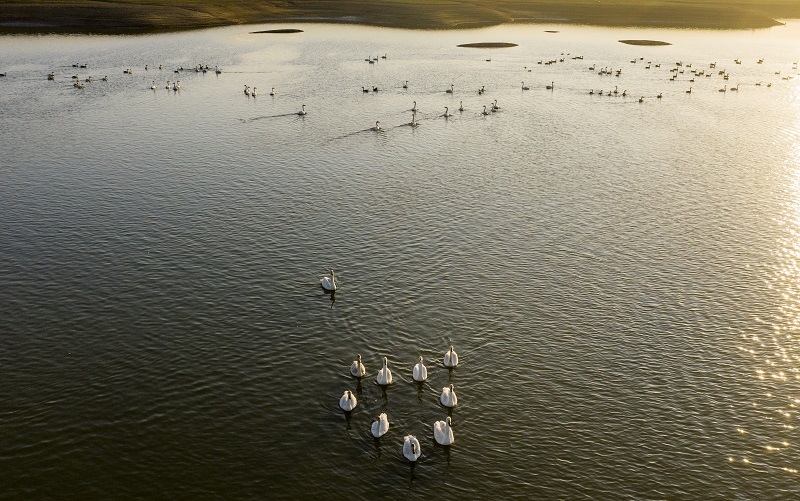 江西鄱陽湖:初春天鵝舞(央廣網(wǎng)發(fā) 通訊員供圖)