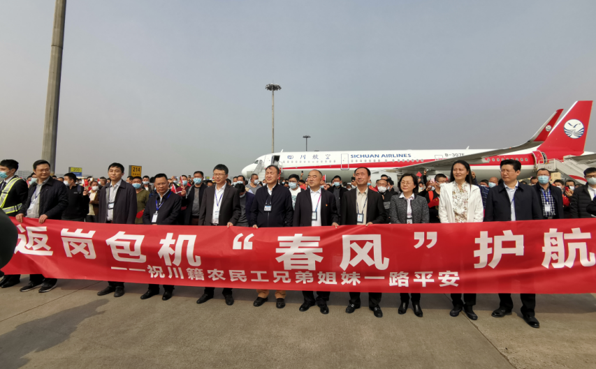 此外,為全力保障農(nóng)民工能順利乘坐專機返崗務工,四川省人力資源社會保障廳還協(xié)調(diào)機場開辟了專屬通道,專設農(nóng)民工值機柜臺、安檢通道、候機等候區(qū)。各級人社部門精準摸排農(nóng)民工返崗需求,出行前為每名乘機農(nóng)民工開展農(nóng)民工防疫健康教育、天府通健康碼查驗和行前體溫監(jiān)測,配備人社專員、公安干警和醫(yī)護人員,全程提供服務保障。四川省政府各駐外辦安排了到達接站和交通接駁服務,確保農(nóng)民工“出得了家門、上得了車門、進得了廠門”。