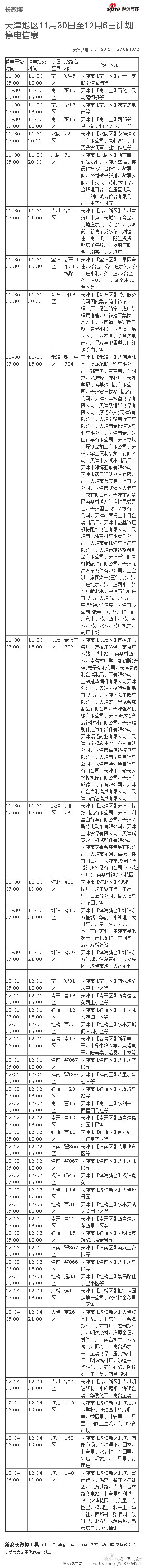 天津地區(qū)11月30日至12月6日計(jì)劃停電信息發(fā)布