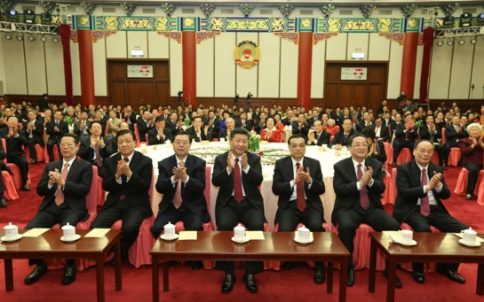 12月31日,全國政協(xié)在北京舉行新年茶話會(huì)。黨和國家領(lǐng)導(dǎo)人習(xí)近平、李克強(qiáng)、張德江、俞正聲、劉云山、王岐山、張高麗出席茶話會(huì)并觀看演出。新華社記者 龐興雷 攝
