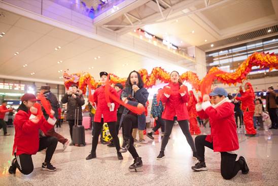 近日,在上海虹橋火車站,一批志愿者上演了以“盡舉手之勞,關(guān)愛春運身邊人”為主題的公益快閃活動,倡導(dǎo)大家用自己的點滴行動,在春運路上互幫互助,溫暖彼此的回家路。