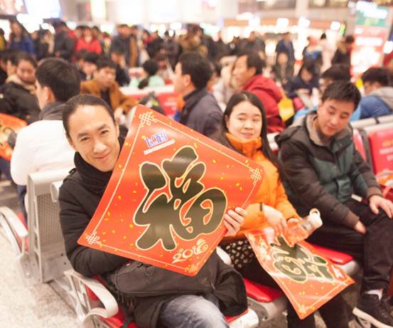(上海虹橋火車站旅客收到飛鶴新春“福”字)