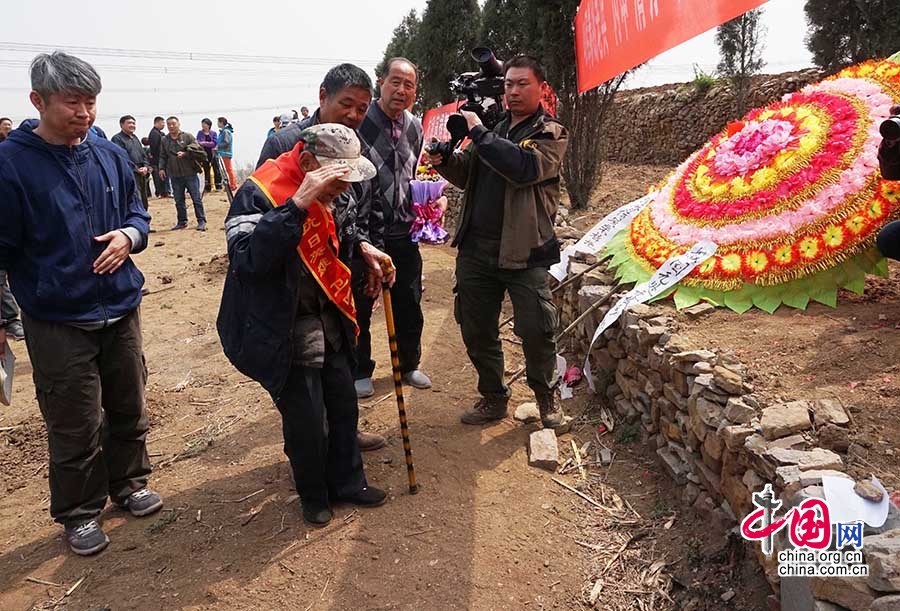 王衛(wèi)青說(shuō),去年我們?cè)趯ふ铱箲?zhàn)老兵中,曾找到五位參加過(guò)常平阻擊戰(zhàn)幸存者老兵,后來(lái)先后有兩位老人謝世了。為了不給在世的老兵留下遺憾,今天我們帶著三位老人,重訪故地,憑吊當(dāng)年的抗戰(zhàn)老戰(zhàn)友,也算了了老人的心愿。今天看到三位老人在戰(zhàn)友墓前落淚,對(duì)我們這些后人來(lái)說(shuō)也是警示,要勿忘國(guó)恥,奮發(fā)圖強(qiáng)。