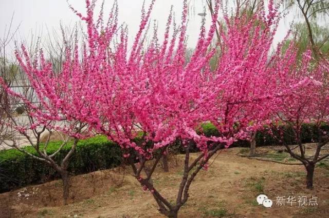 7.碧桃:樹冠寬廣而平展,花型豐腴,色彩鮮艷,在園林綠化中被廣泛用于湖濱、水畔、道路兩側和公園內(nèi)?倳浽诒本﹨⒓恿x務植樹時種植。